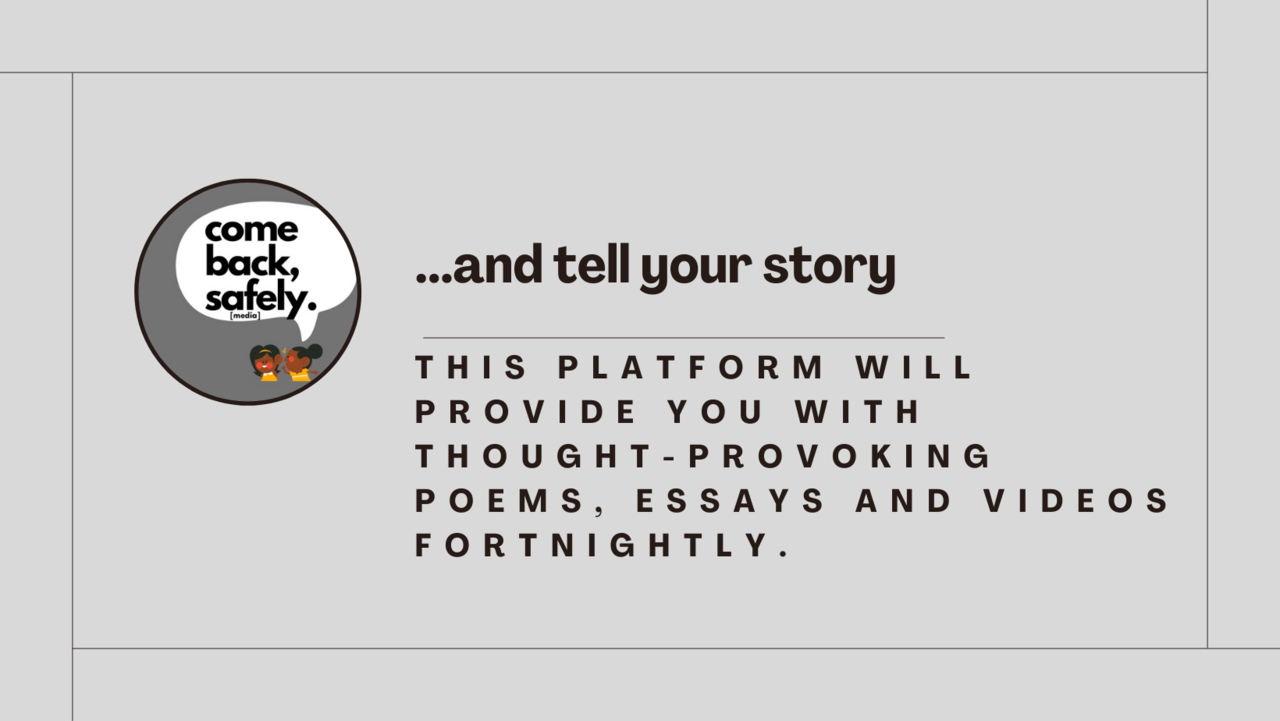 comeback, safely is a newsletter founded by Bhasani Mlambo. A writer in her early 20's who aims to create a safe space for people to read her poetry and essays. This is her safe space on the internet but it can also be your safe space too if you like!